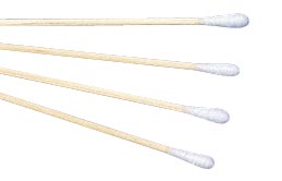 Tamponcini sterili da esame in cotone/viscosa su supporto in legno/plastica/alluminio.
